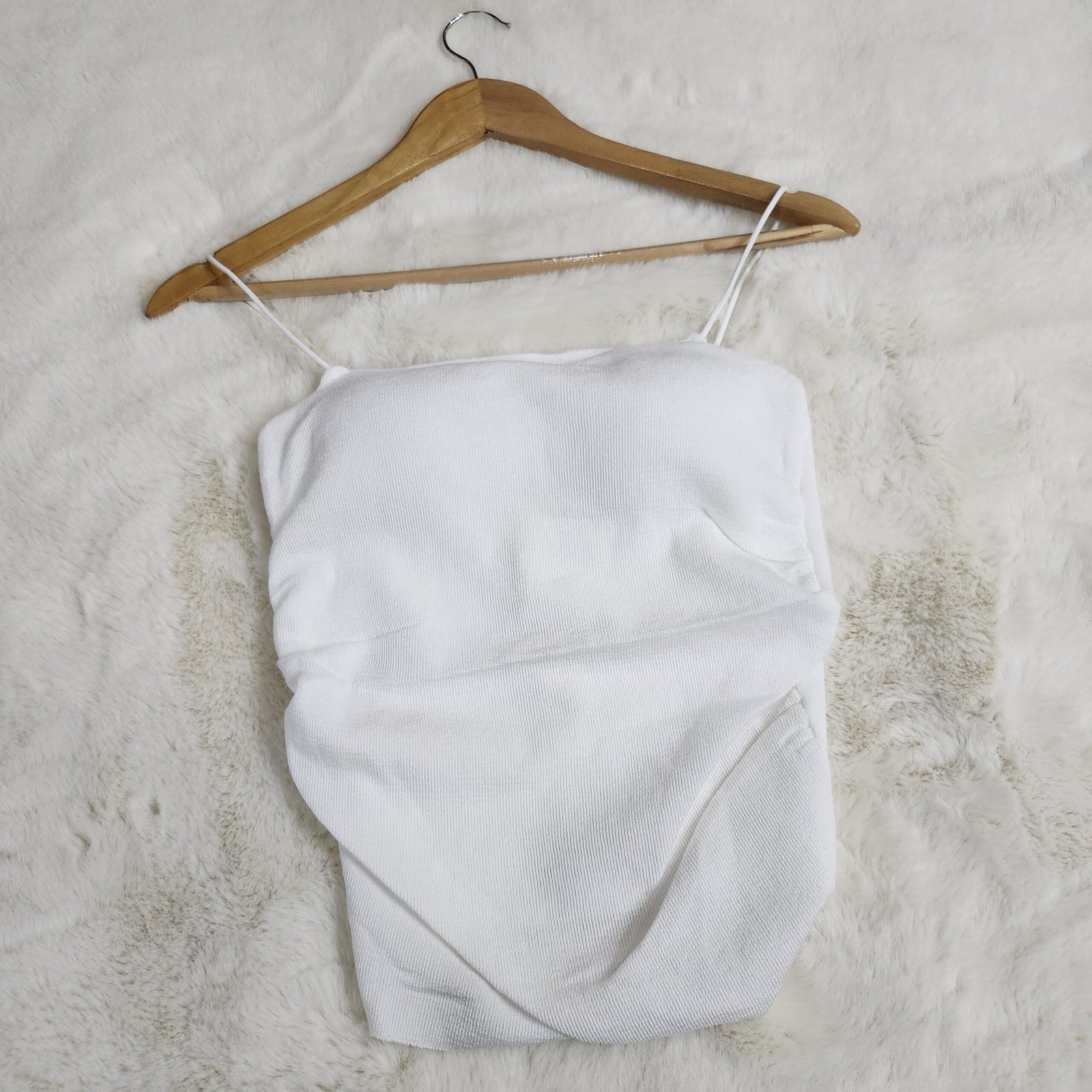 Featuring a sleek body-hugging fit, soft ruching, and delicate spaghetti straps — this top is your go-to for a minimal yet striking look that oozes modern chic. Perfect for nights out or layering under blazers for a classy edge.